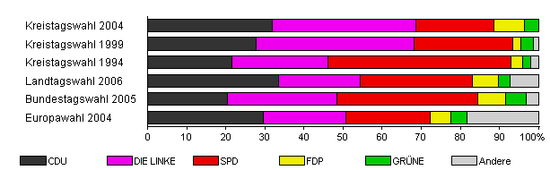 | Kreistagswahl 2004 | 49,1 | 32,0 | 36,6 | 20,1 | 7,6 | 3,7 | x | |