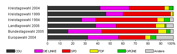 | Kreistagswahl 2004 | 44,8 | 41,8 | 23,1 | 28,1 | 3,7 | 3,0 | 0,3 | |