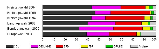 | Kreistagswahl 2004 | 55,5 | 43,4 | 25,7 | 21,8 | 3,4 | 3,2 | 2,5 | |