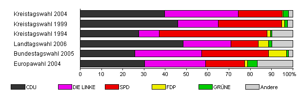 | Kreistagswahl 2004 | 52,3 | 39,6 | 34,8 | 20,7 | 0,4 | 2,6 | 1,8 | |