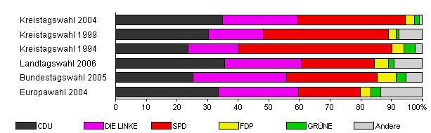 | Kreistagswahl 2004 | 39,1 | 35,0 | 24,4 | 35,1 | 3,1 | 1,6 | 0,8 | |
