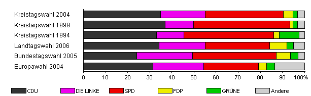 | Kreistagswahl 2004 | 35,9 | 35,0 | 20,1 | 35,3 | 4,4 | 2,1 | 3,0 | |
