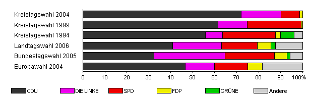 | Kreistagswahl 2004 | 76,5 | 72,1 | 18,1 | 8,4 | 1,4 | - | x | |