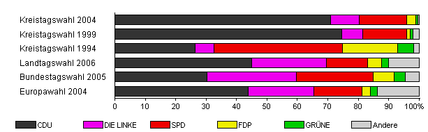 | Kreistagswahl 2004 | 64,2 | 70,9 | 9,4 | 15,6 | 3,0 | 0,7 | 0,4 | |