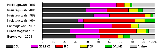 | Kreistagswahl 2007 | 35,1 | 42,3 | 23,5 | 7,1 | 5,4 | 1,5 | 20,2 | |