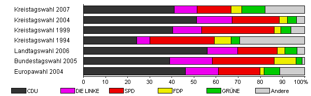 | Kreistagswahl 2007 | 49,2 | 41,0 | 10,4 | 15,3 | 4,9 | 10,6 | 17,7 | |