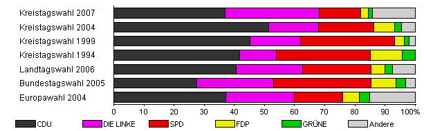 | Kreistagswahl 2007 | 32,1 | 36,9 | 31,3 | 13,7 | 2,5 | 1,5 | 14,0 | |