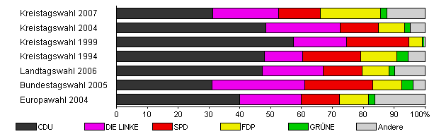 | Kreistagswahl 2007 | 38,6 | 31,3 | 21,2 | 13,7 | 19,4 | 2,1 | 12,2 | |