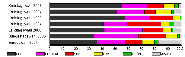 | Kreistagswahl 2007 | 38,1 | 55,0 | 19,1 | 12,4 | 8,6 | 2,9 | 2,0 | |