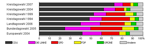 | Kreistagswahl 2007 | 40,7 | 72,3 | 8,2 | 7,5 | 3,0 | 4,0 | 5,0 | |