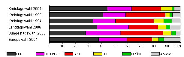 | Kreistagswahl 2004 | 45,5 | 44,0 | 18,8 | 22,3 | 8,9 | 1,5 | 4,4 | |