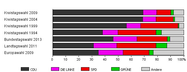 | Kreistagswahl 2009 | 56,8 | 68,9 | 10,4 | 10,8 | 2,1 | 7,8 | |