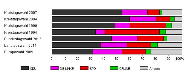 | Kreistagswahl 2004 | 47,6 | 59,7 | 20,3 | 11,1 | 3,3 | 5,6 | |