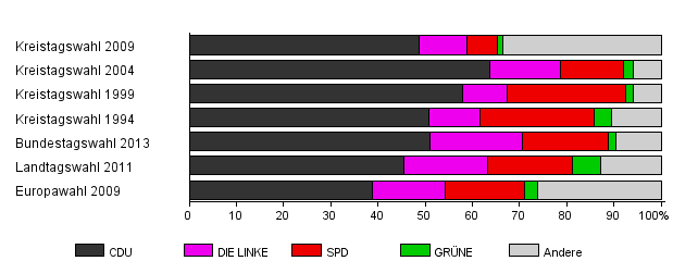 | Kreistagswahl 2004 | 53,1 | 63,6 | 15,1 | 13,4 | 1,9 | 6,0 | |
