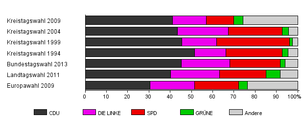 | Kreistagswahl 2009 | 45,4 | 41,2 | 15,7 | 13,0 | 4,4 | 25,7 | |
