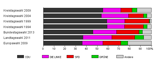 | Kreistagswahl 2009 | 38,6 | 55,2 | 16,5 | 10,3 | 4,8 | 13,1 | |